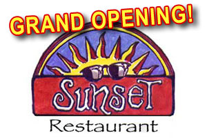| On April 22, 2005 the much anticipated NEW Sunset Restaurant opened its doors for business. This night was the first of three consecutive opening nights, and it featured a Mexican cuisine. Marc, Natalie, and staff were excited, the renovated interior was chic, and the evening was fully booked. Saturday was Greek night and Sunday was a traditional turkey dinner.